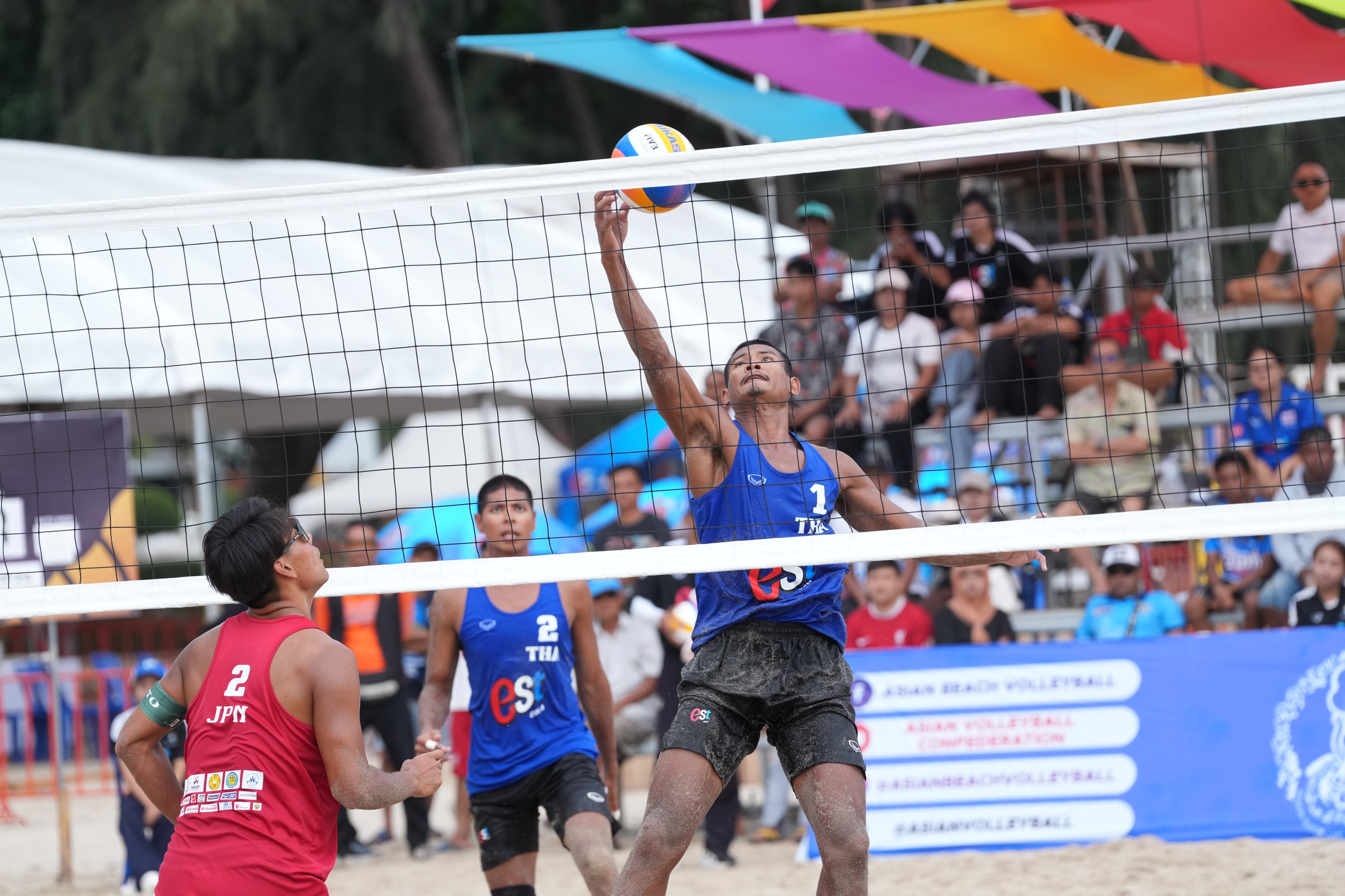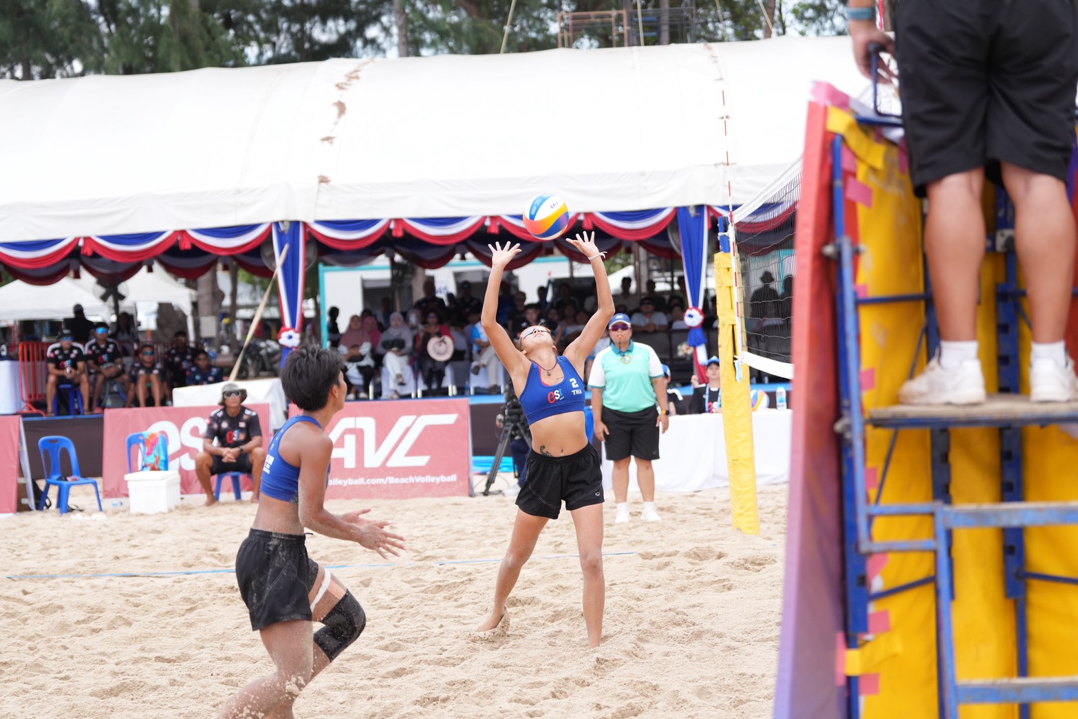 ขณะที่อีกคู่ ไทย 2 “อัน” สลิลดา มุงคล และ “ซันย่า” พัชราพร สีหะวงศ์ คู่มือวางอันดับ 9 ของรายการ เจอกับ ฟิลิปปินส์ คีย์เล็ม โปรเกลลา และ โซฟิอา ปาการา คู่มือวางอันดับ 18 ของรายการ ทีมไทย2 สตาร์ทดี อ่านเกมฟิลิปปินส์ดักบล็อกได้หลายแต้มทำให้ขึ่นนำก่อนเซตแรก 21-18 เซตสองสาวไทยยิ่งเล่นยิ่งมั่นใจ ได้เสียงเชียร์ข้างสนามเข้าช่วย เอาชนะไป 21-14 เข้ารอบตัดเชือกได้เป็นครั้งแรกในรายการนี้ของทั้งคู่ วันพรุ่งนี้รอบรองชนะเลิศ พบกับ นิวซีแลนด์ทีมวางอันดับ 3 ของรายการ ที่ชนะญี่ปุ่นคู่แชมป์เก่า ต่อไป