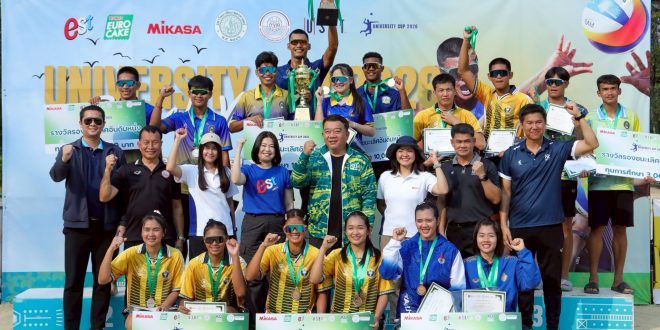 การแข่งขันวอลเลย์บอลชายหาดอุดมศึกษา ครั้งที่ 1 ประจำปี 2569 หรือ “Beach Volleyball University Cup 2026“ เพื่อพัฒนานักกีฬาวอลเลย์บอลชายหาดในระดับอุดมศึกษาไม่ให้ขาดช่วง ทดแทนที่ไม่มีจัดชิงชัยกีฬามหาวิทยาลัยแห่งประเทศไทย แข่งขันที่สนามวอลเลย์บอลชายหาด อินทรีจันทรสถิตย์ มหาวิทยาลัยเกษตรศาสตร์ บางเขน ในวันสุดท้าย ผศ. รัชด ชมภูนิช รองอธิการบดี ฝ่ายกิจการนิสิตและพัฒนาอย่างยั่งยืน มหาวิทยาลัยเกษตรศาสตร์ เป็นประธานในพิธีปิดและมอบรางวัลให้กับนักกีฬา สำหรับผลการแข่งขันในรอบชิงชนะเลิศ ประเภททีมชาย นพดล สุขภูวงศ์ และ วชิรวิทย์ หมวดผา จากมหาวิทยาลัยเกษมบัณฑิต ช่วยกันตบเอาชนะ เนติธร มุนีกุล และ วีรยุทร โสตะปิ จากมหาวิทยาลัยราชภัฏร้อยเอ็ด 2-1 เซต 15-21, 21-17 และ 15-10 ส่งผลให้คู่นักตบหนุ่มมหาวิทยาลัยเกษมบัณฑิต คว้าแชมป์ไปครอง ขณะที่อันดับ 3 …