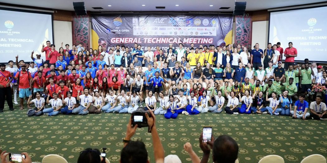 นักตบลูกยางชายหาดเอเชีย 58 ทีม จากทีม 17 ชาติ พร้อมร่วม ศึกวอลเลย์บอลชายหาด เอสโคล่า เอวีซี บีช ทัวร์ สมิหลา โอเพ่น ครั้งที่ 25 วันที่ 12-15 เม.ย.นี้ ที่บริเวณชายหาดสมิหลา จังหวัดสงขลา นายสมพร ใช้บางยาง นายกสมาคมกีฬาวอลเลย์บอลแห่งประเทศไทย และนางสุรียพรรณ์ ณ สงขลา รองนายกฯองค์การบริหารส่วนจังหวัดสงขลา ร่วมเป็นประธานการประชุมทางเทคนิคและจับสลากสายแข่งขันวอลเลย์บอลชายหาด เอสโคล่า เอวีซี บีช ทัวร์ สมิหลา โอเพ่น ครั้งที่ 25 (“Est Cola” AVC Beach Tour 25th Samila Open) ระหว่างวันที่ 12-15 เมษายน 2569 ณ …